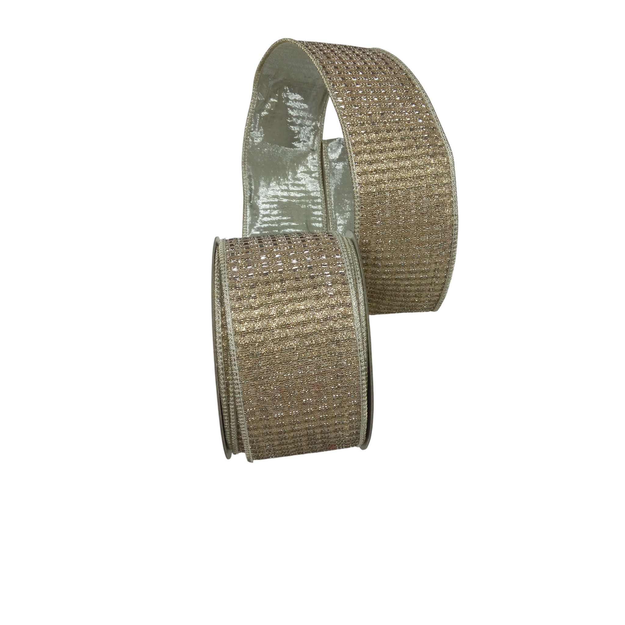 2.5"x10Y CHAMPAGNE GLITTER WAFFLE WIRED RIBBON
